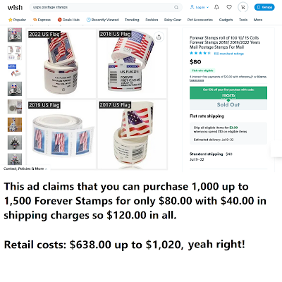 If you find USPS postage stamp listings on Wish.com or Shein these are fake stamps. Listings on eBay may or may not be fake, but if the deal is too good to be true, then they are likely fake.